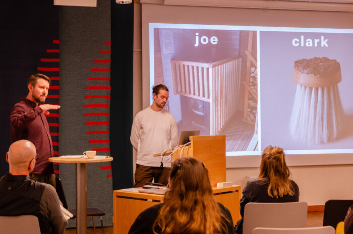 På plats fanns även de lokala designerna och finsnickarna i Virkesverket. Espen Hansen, Alvara Amburu, Joe Clark och Hannes Blixt som berättade om sina första konkreta steg mot en lokal värdekedja. Med egen såg och tork är de redan igång och har bland annat tagit emot virke från naturvårdsavverkningar i området. De talade om drivkraften att skapa vackra möbler från lokalt producerat virke och om att se till att träd med hög kvalitet tas om hand på rätt sätt.
